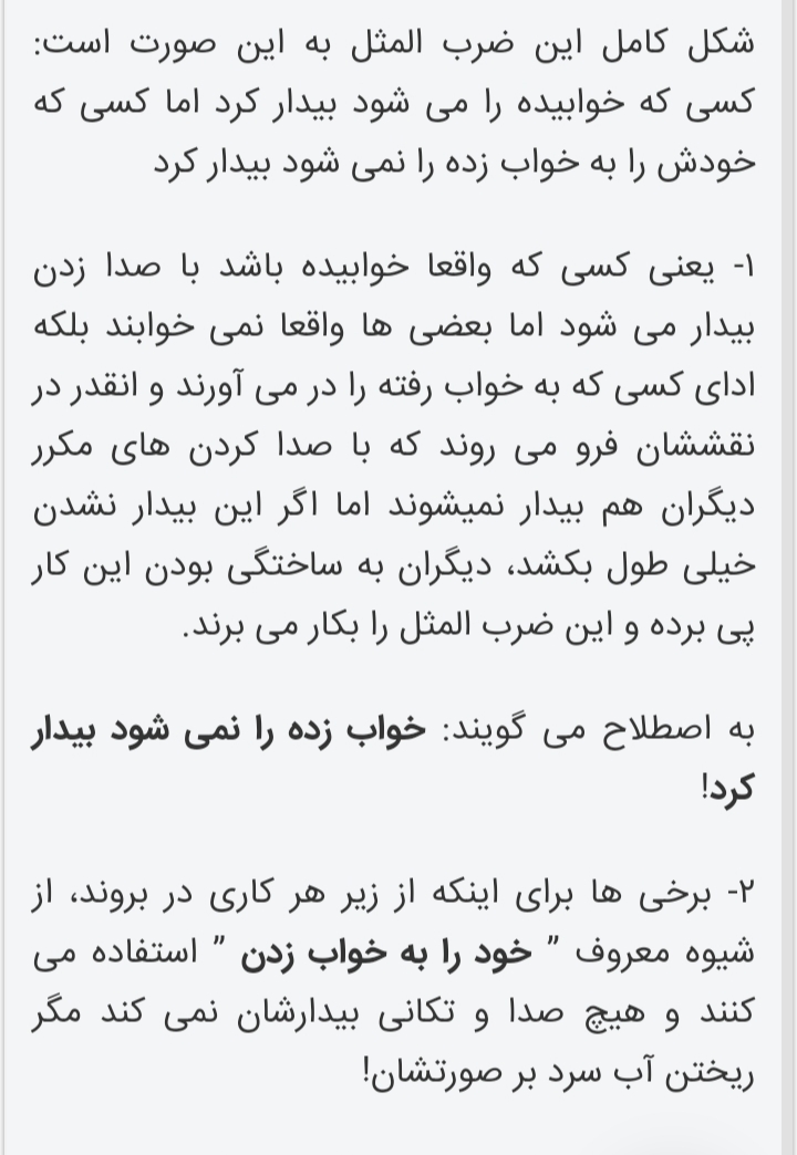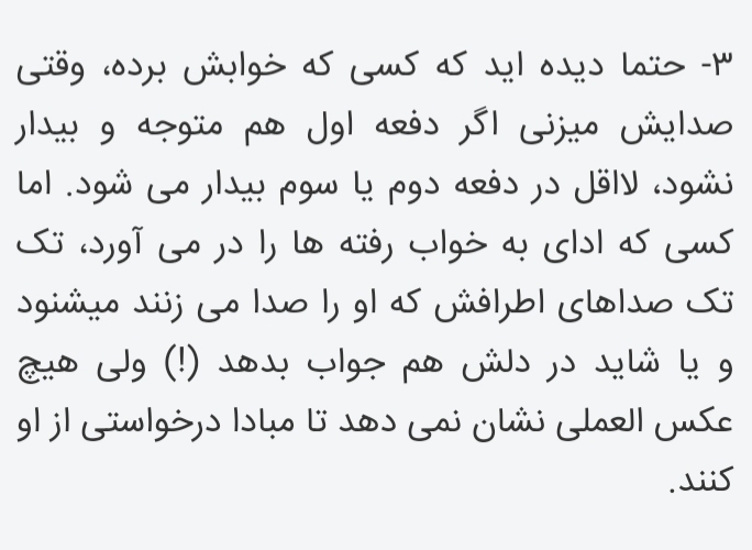 ((اما بعضیها واقعا نمیخوابند، بلکه ادای کسی که به خواب رفته را درمیآورند و آنقدر در نقششان فرو میروند که با صداکردنهای مکرر دیگران هم بیدار نمیشوند))
