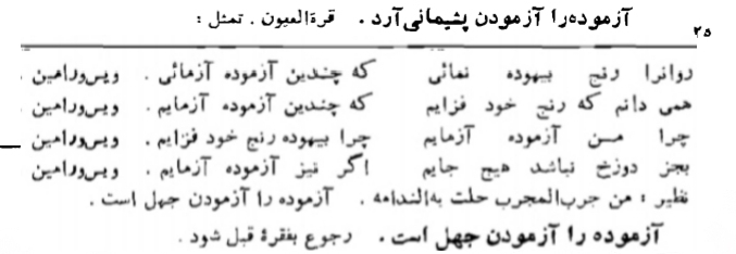 برای نمونه کسی که کاری را در گذشتهتر انجام داده و به شکست رسیده و دوباره میخواهد از همان راه به هدف خود برسد. به او میگویند؛ آیا کاری را که قبلا انجام دادهای و بارها به شکست رسیدی، باز میخواهی بیازمایی! و ...